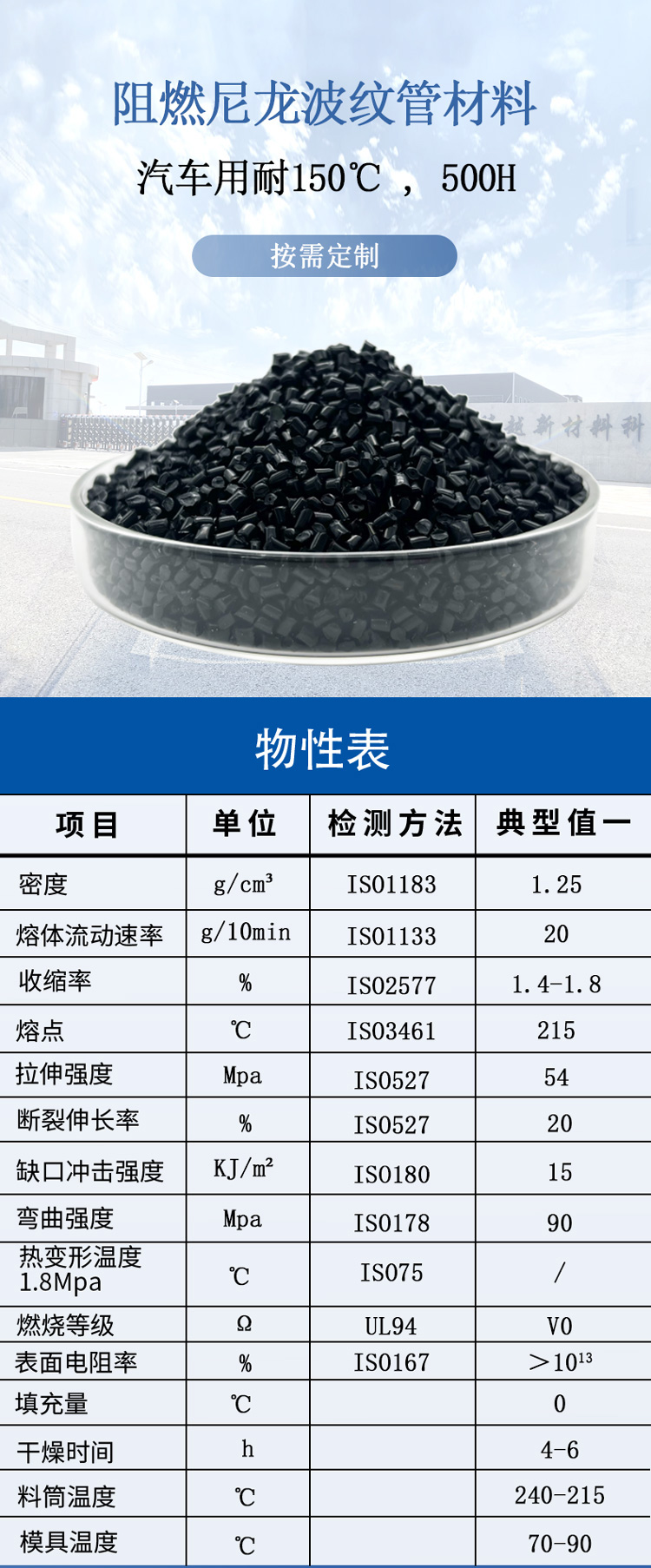 汽車用耐150℃ , 500h阻燃尼龍波紋管材料